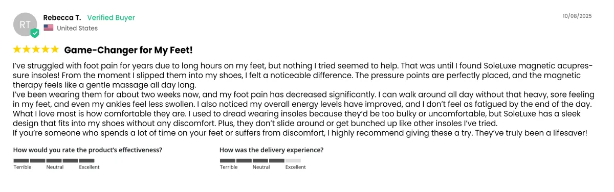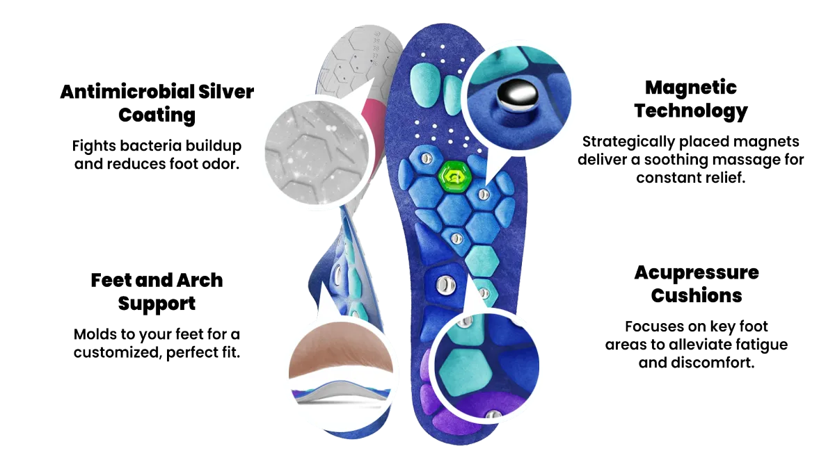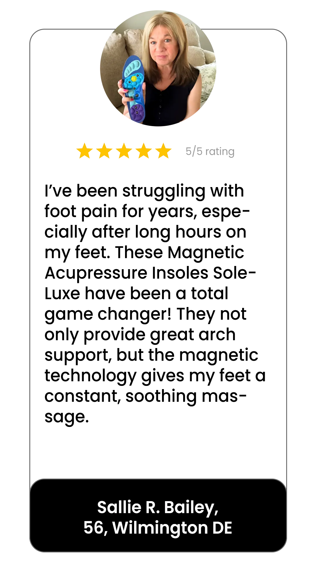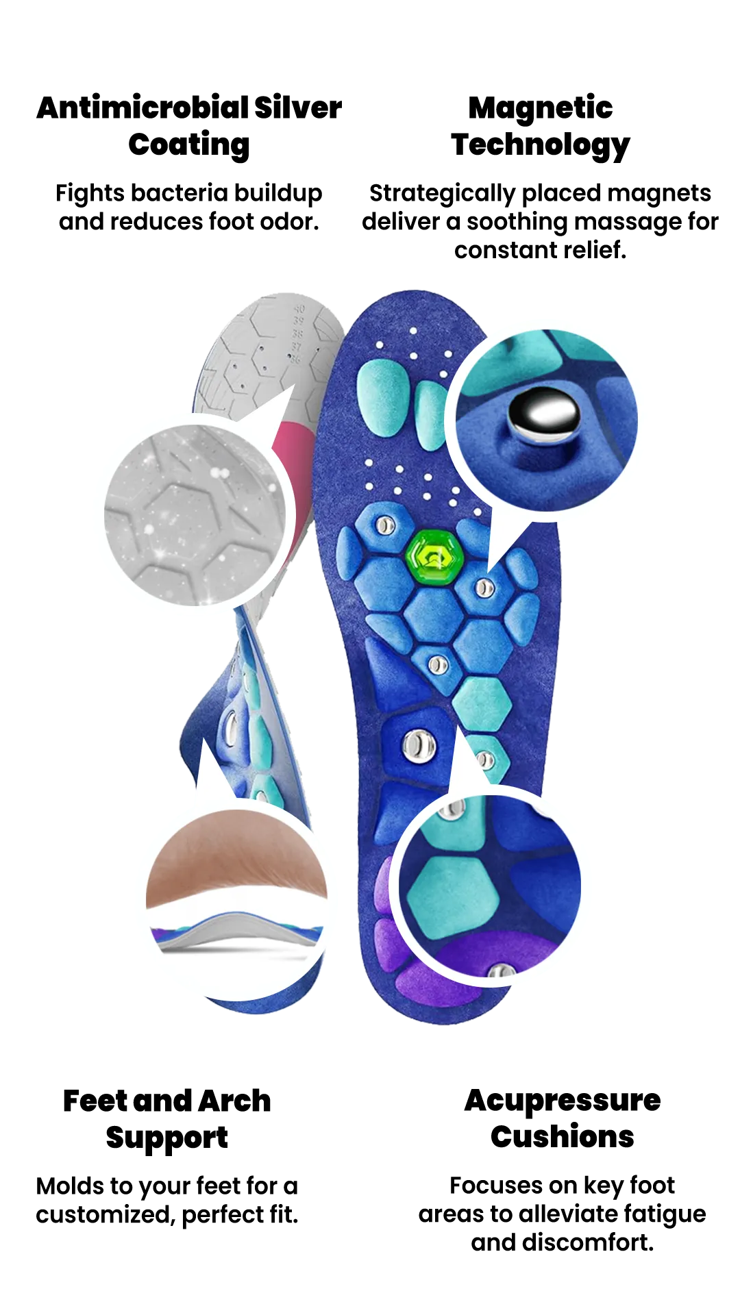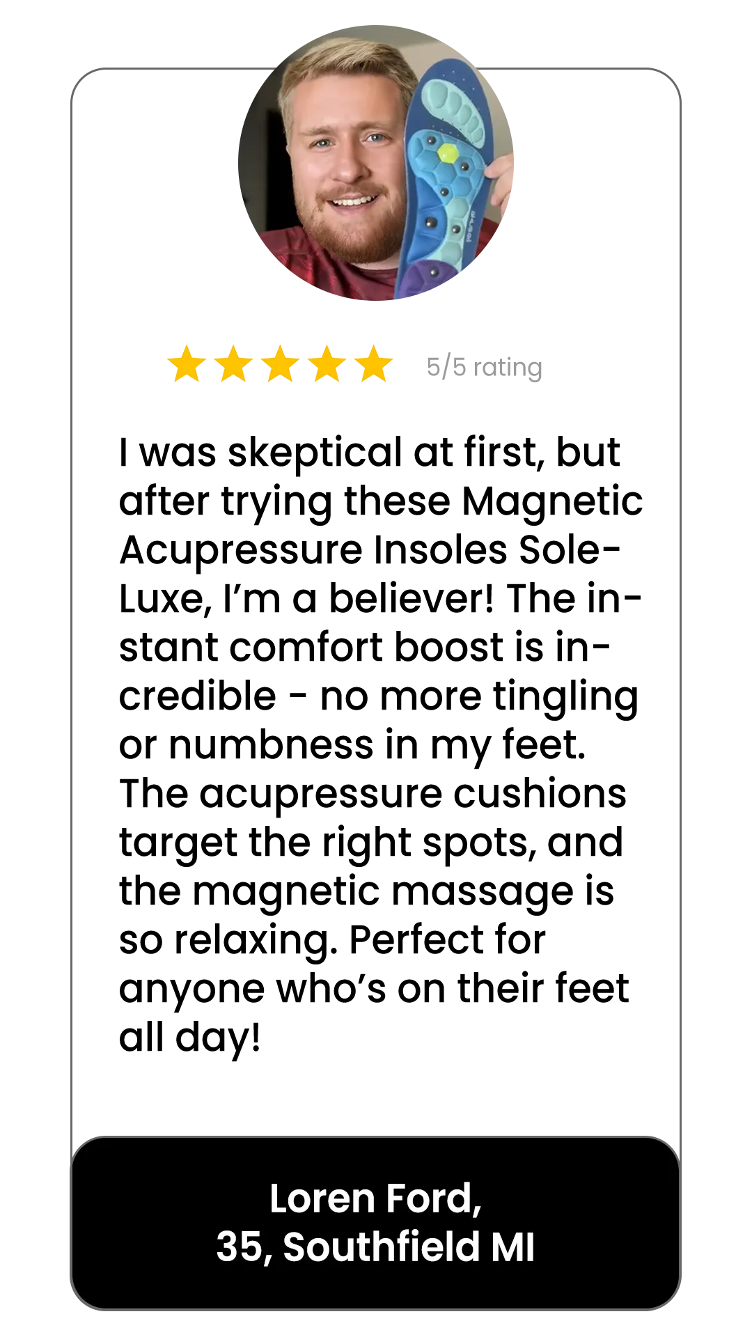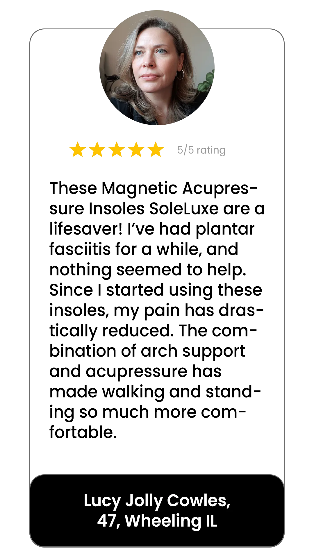 SoleLuxe is a magnetic acupressure insole that blends centuries-old Japanese wellness principles with modern innovation. Designed to gently stimulate key pressure points, it helps support circulation, energy flow, and overall body balance - bringing comfort and vitality with every step.