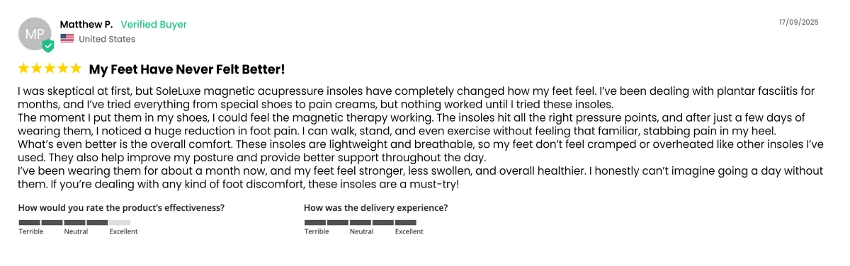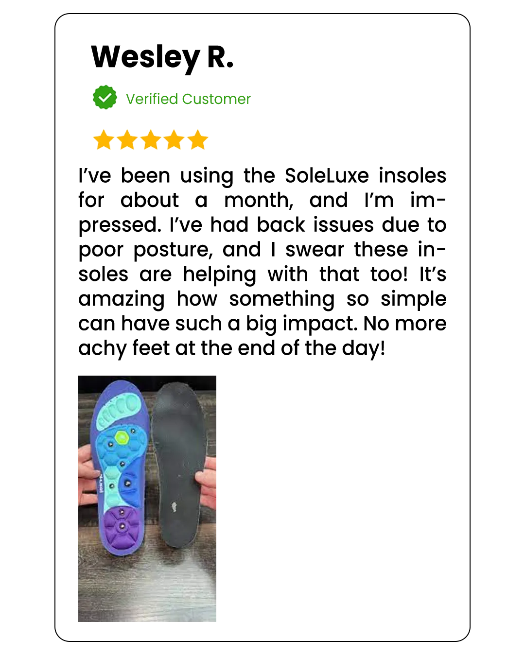 SoleLuxe insoles are made with durable materials to withstand daily use. While the exact lifespan may vary based on usage, they are built for long-lasting comfort and support, providing reliable performance over time.